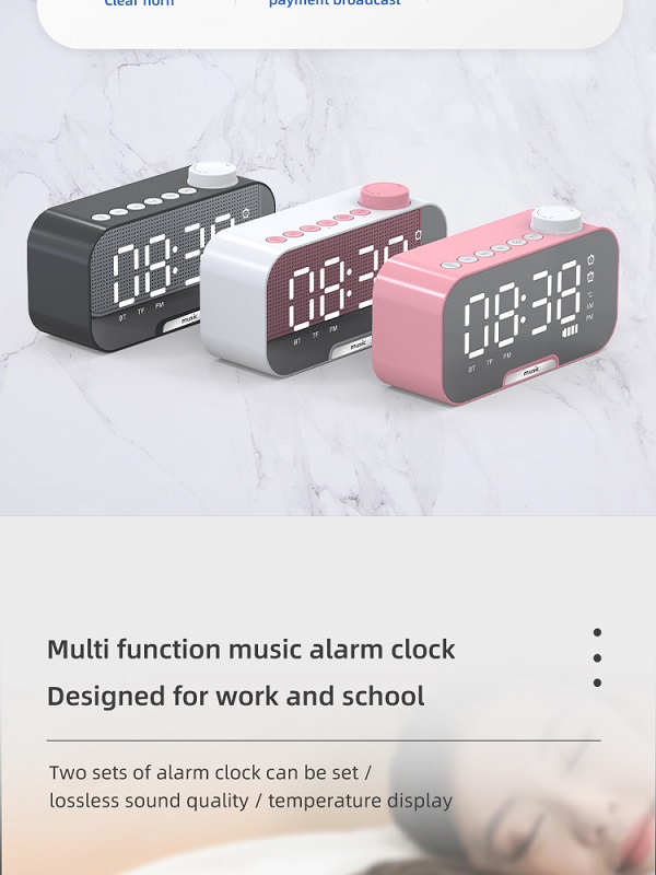⏰In addition to the internal alarm ringtones, you can also set the ringtones for FM or TF card music, adjust